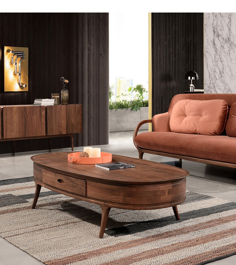 青春潮実木茶の楕円形の茶何黒胡桃の木の客間の茶何の軽い豪華な簡単な別荘の茶何の160*80*40 CM【ピクチャーの価格のブランドのオファー】-京東