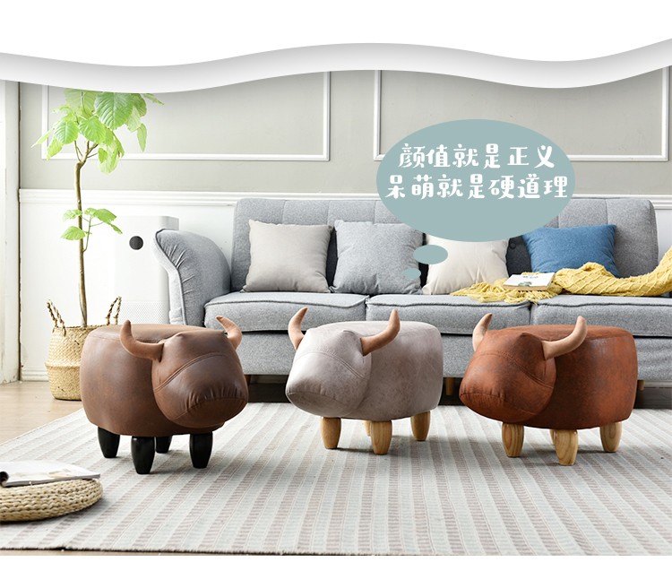 芸柳園の小さい腰掛けの動物のアイデアの漫画の小さい腰掛けの家庭用ソファーの低い腰掛けの実用的な木の客間は靴の椅子の水牛を交換します【深い褐色】【図の価格のブランドのオファー】-京東