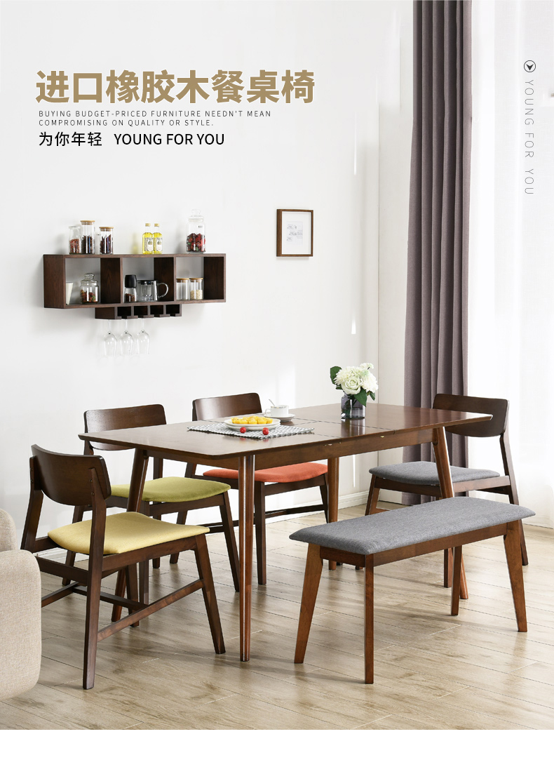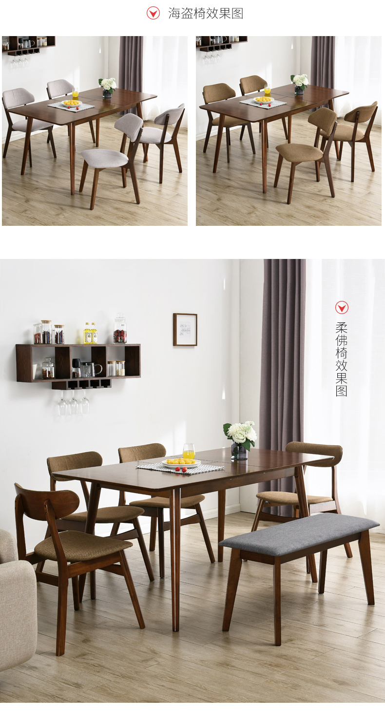 芸柳園テーブルの実木は長方形のテーブルとテーブルの組み合わせができます。現代簡単なテーブル伸縮テーブル+ライトグレーの海賊椅子*4本【写真価格ブランドのオファー】-京東