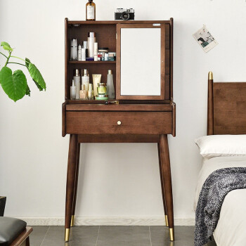 芸柳園北欧ドレッサーベッドルーム丸太化粧台テーブル小戸型寝室軽奢実木化粧テーブル胡桃色ドレッサー【写真価格ブランド見積】-京東