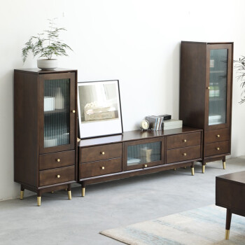 芸柳園実木テレビキャビネット茶何組かの組み合わせは現代で簡単で、小型テレビキャビネットリビングルームの家庭用ロッカー【軽贅沢品】高辺キャビネット+黄銅アクセサリー【写真価格ブランド見積】-京東